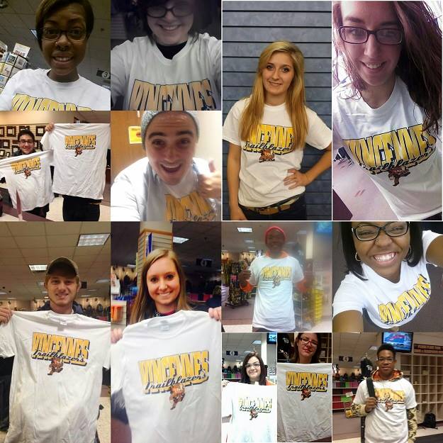 We required a student ID, and a Facebook "Like" (or proof that they already liked us). We also asked that they post a pic of themselves with their new shirts. As you can see, it was a great success!