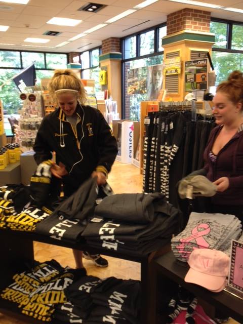 Audrey Herr, University Store Manager: We offered sales all day, including a special on Jerzees sweatpants and a free t-shirt with a $19.95 purchase. We sold 105 pairs of the sweatpants and gave away 195 t-shirts! A portion of sales (10%) from pink ribbon caps and t-shirts (purchased all through October) will be donated to Millersville University Health Services Breast Cancer Initiative.