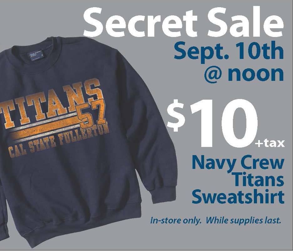 Titan Shops, at Cal State University – Fullerton, always seems to be doing something to get new customers into their store. Whether it’s putting on an open house or traditional sales to coincide with holidays like National Student Day, Titan Shops Marketing Coordinator Katie Cover is usually busy planning something new and exciting. The most recent special event was a “secret sale,” something that the store likes to do a few times each semester.